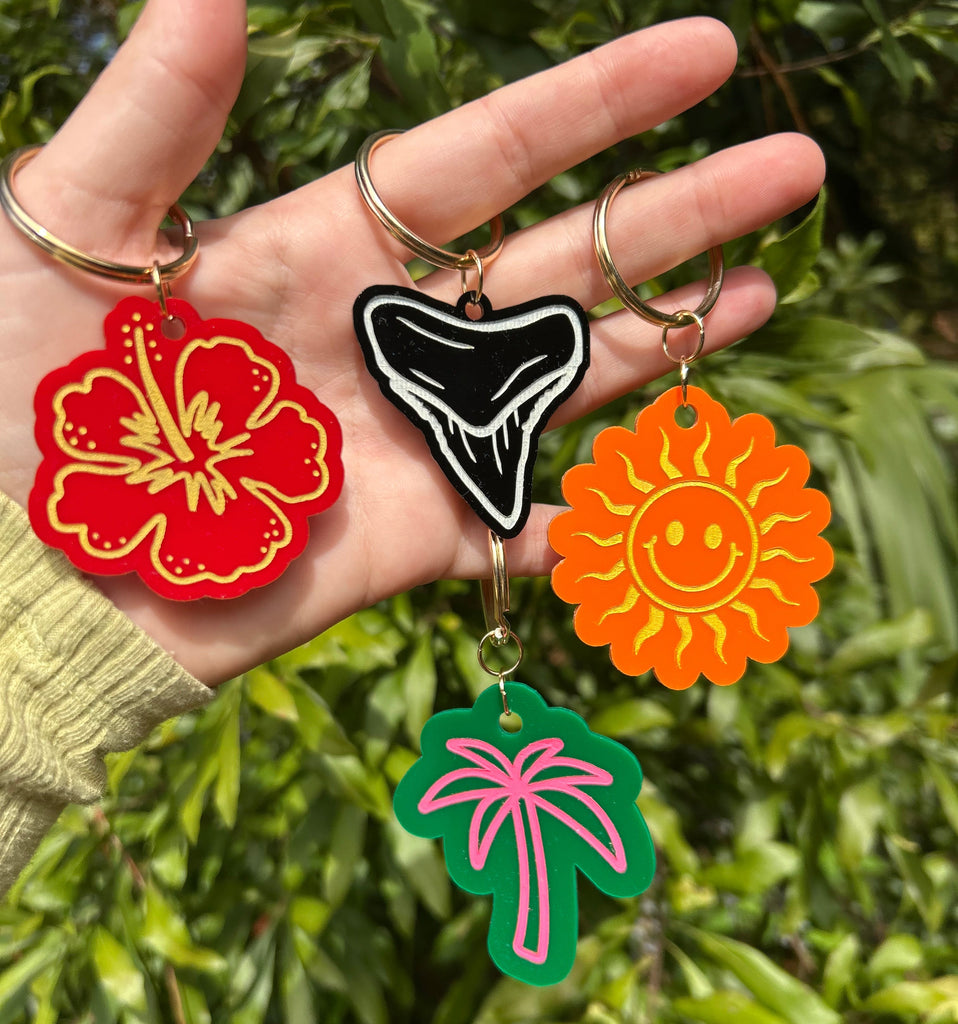 Laser engraved Acrylic keychain with nickel free key ring. Size is approximately 2 x2”.
